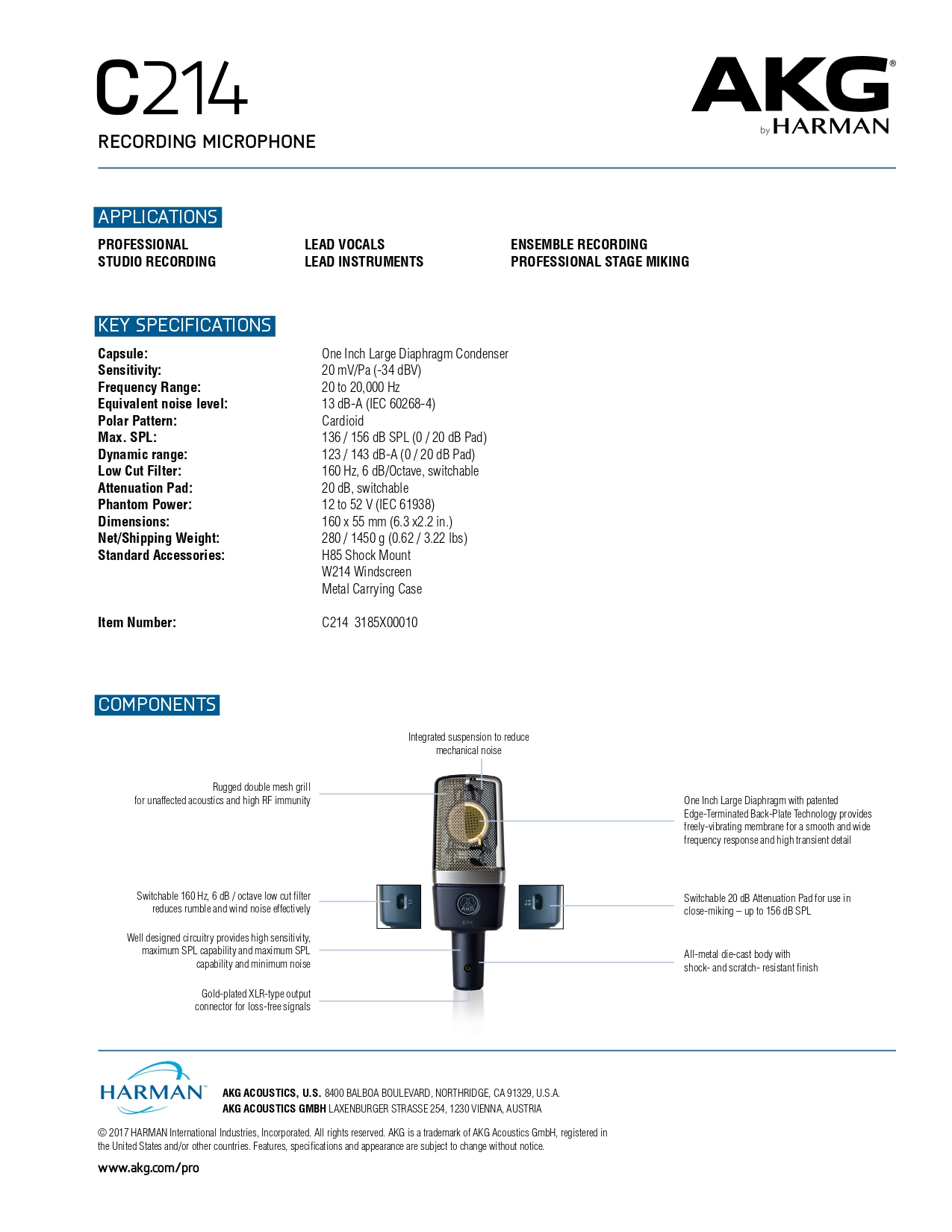 AKG C214 Professional large-diaphragm condenser microphone