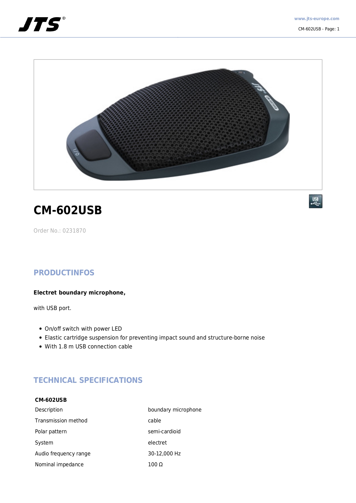 JTS CM-602USB Electret Boundary Microphone with USB port