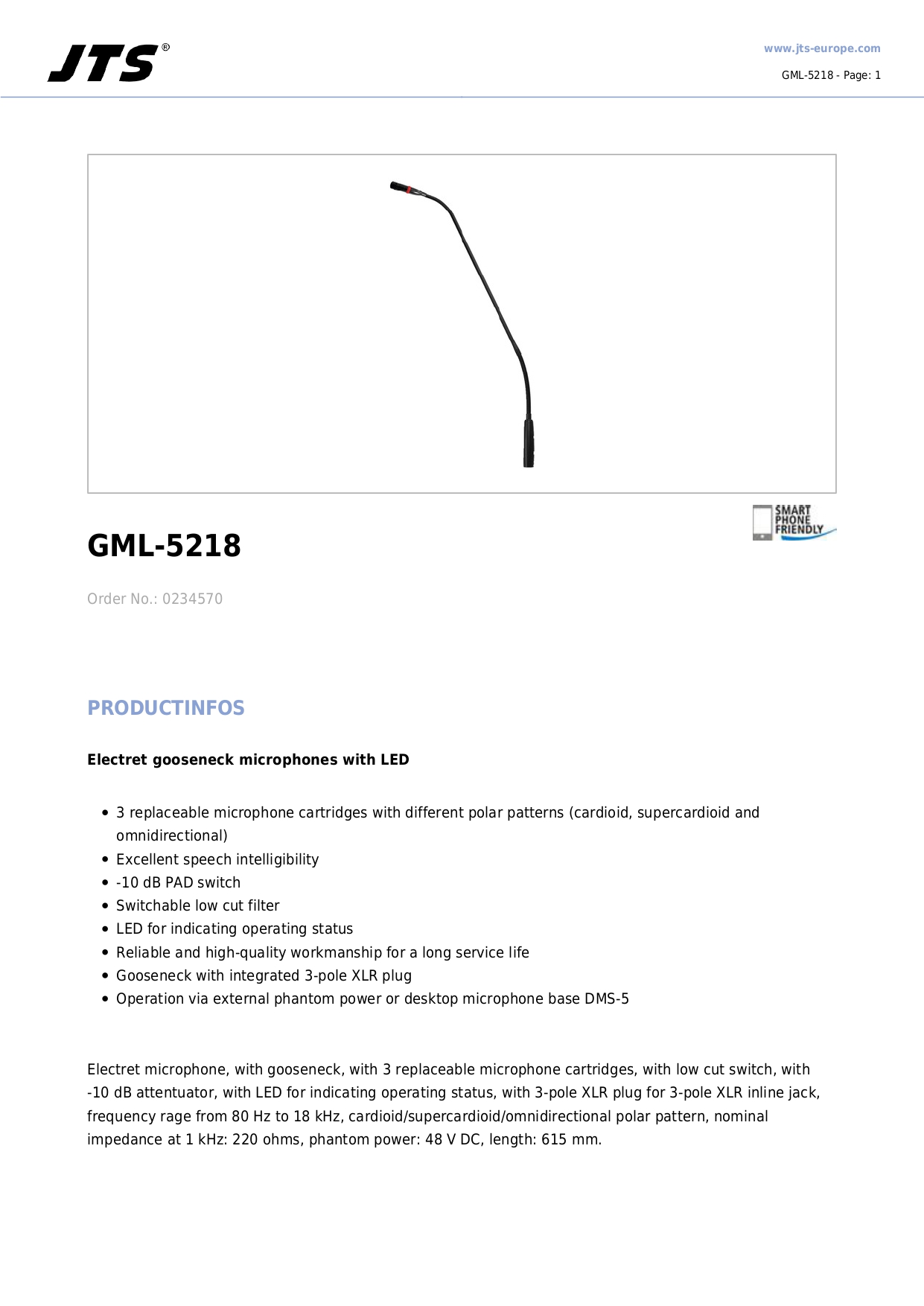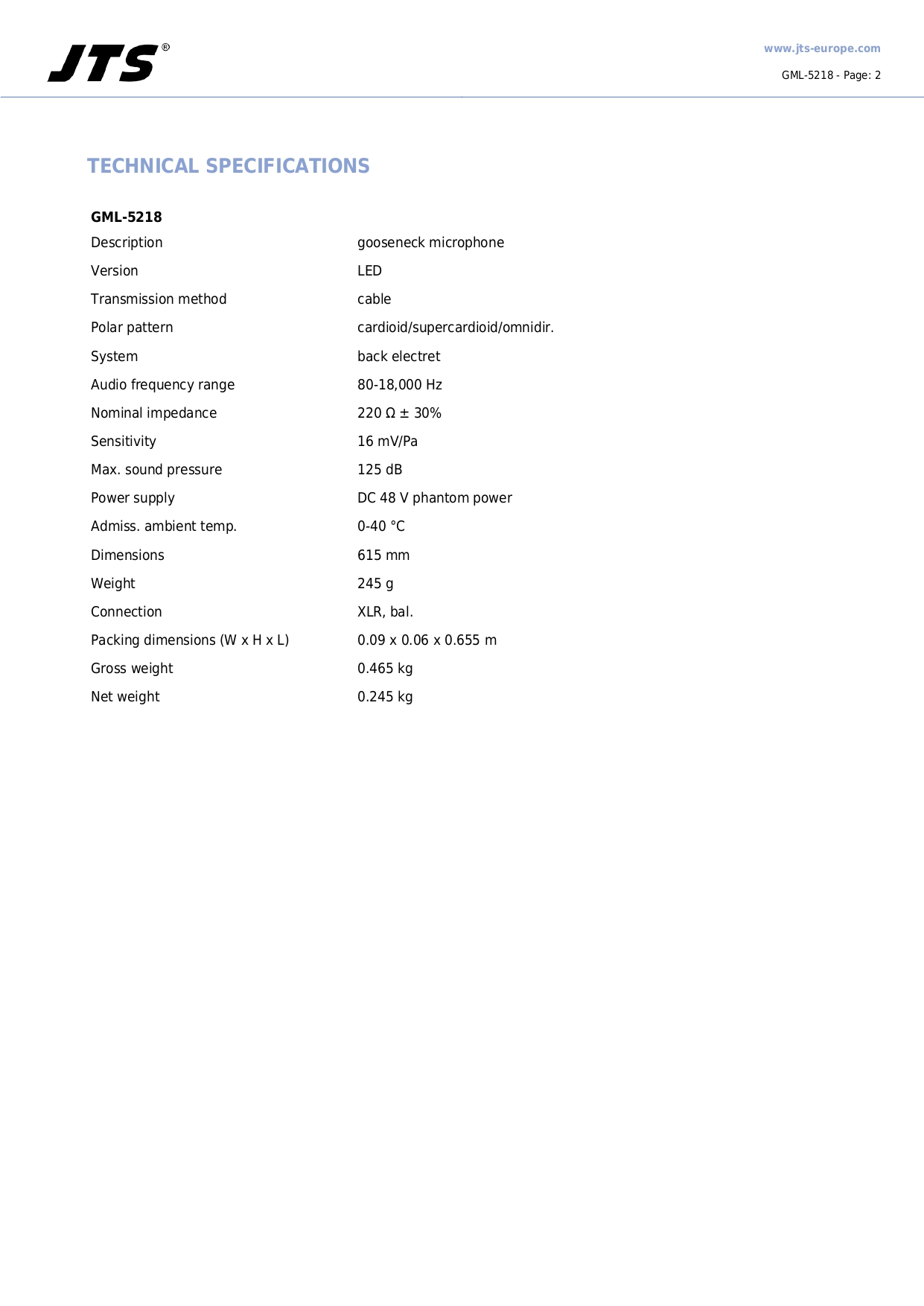 JTS GML-5218 Electret gooseneck microphones with MS-G5 windscreen