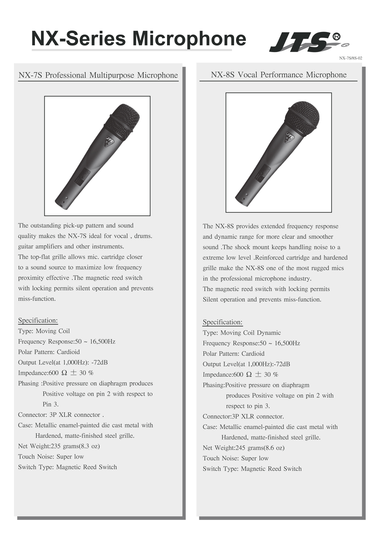 JTS NX-8S Vocal Performance Microphone with on/off switch