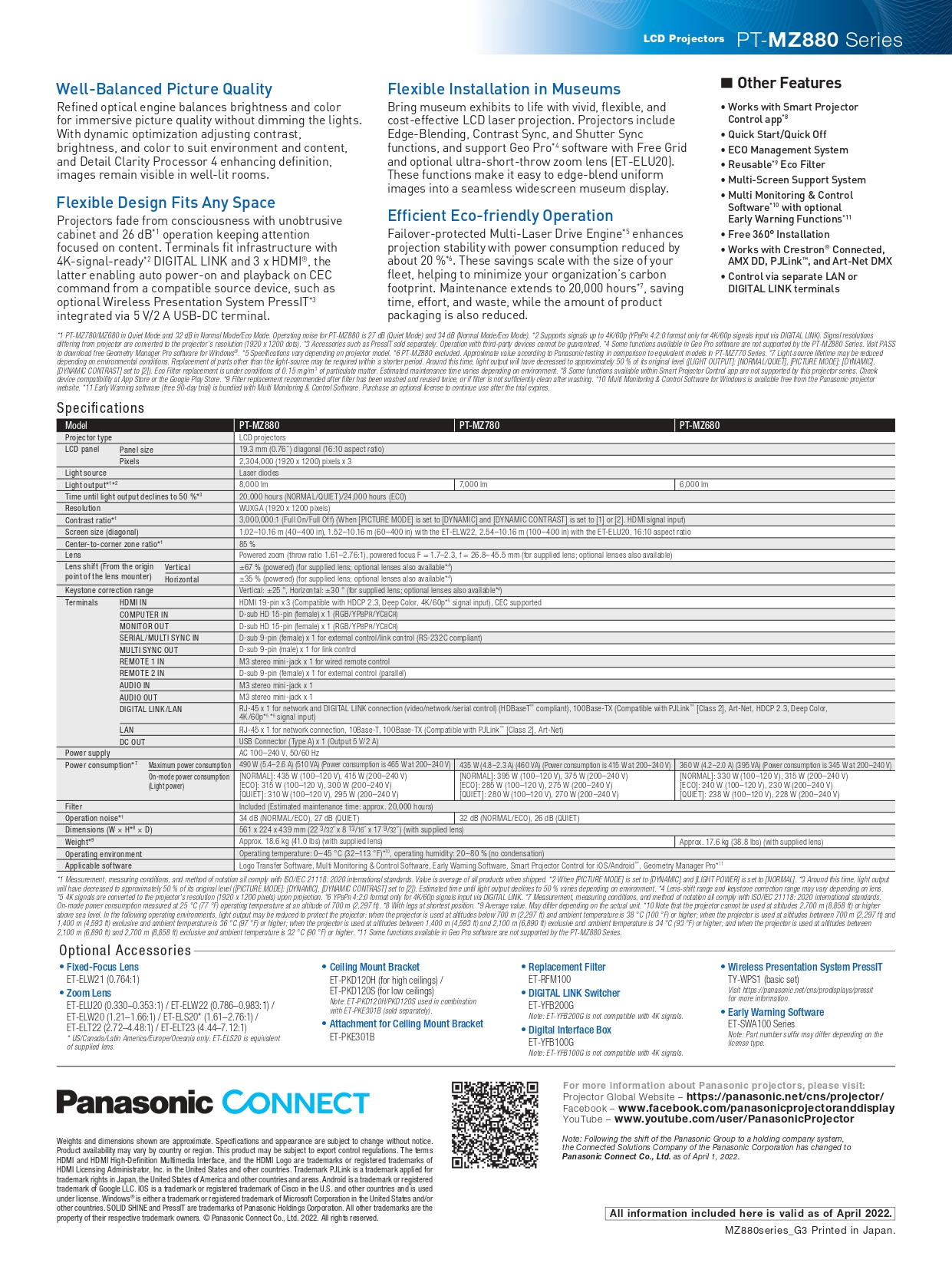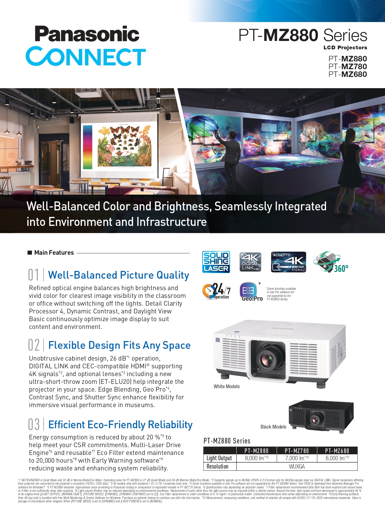 PANASONIC PT-MZ880 (WUXGA/8,000 LM) ความละเอียด 1920 x 1200 pixels, 3,000,000:1 contrast (สีขาว)