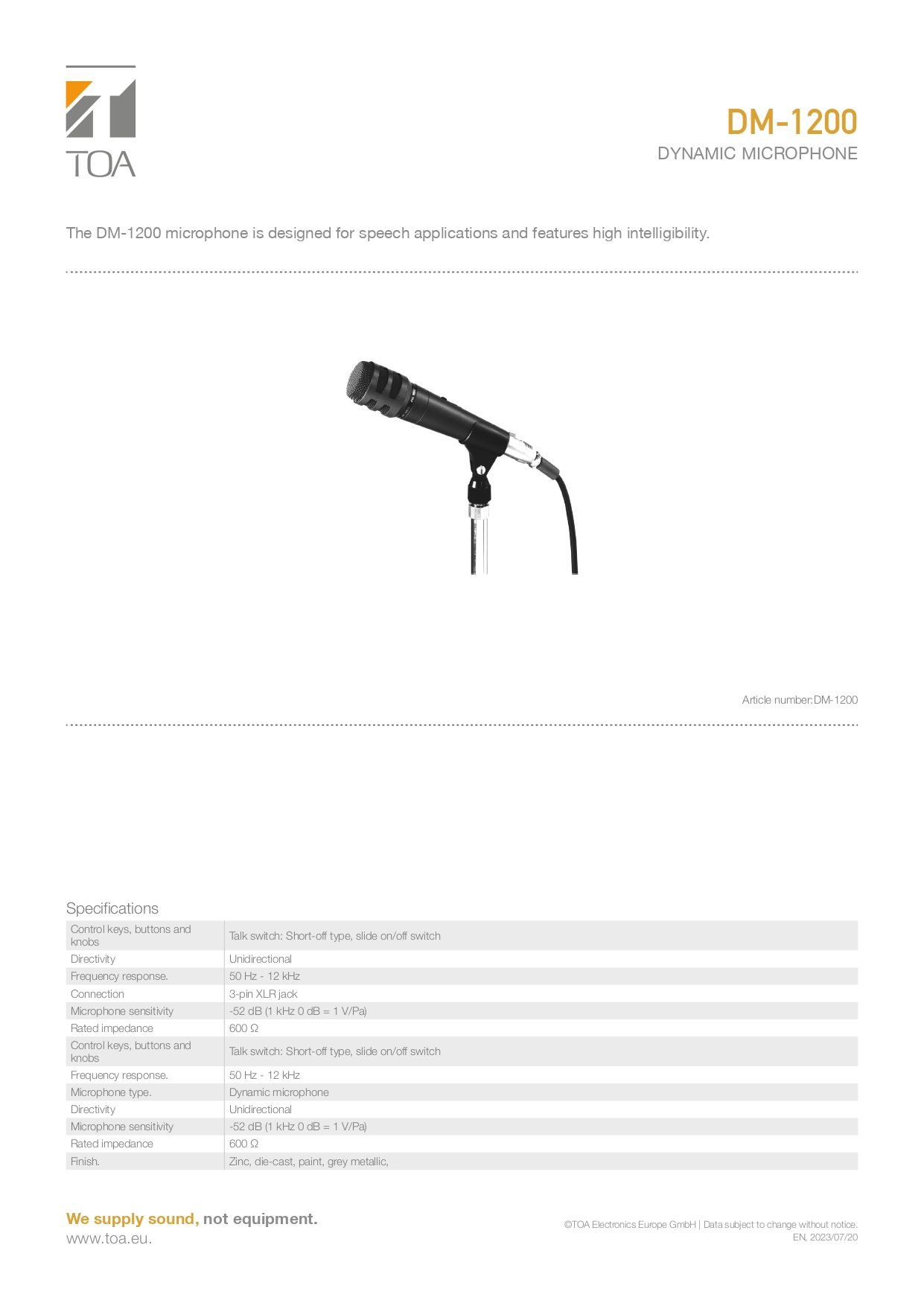 TOA DM-1200 Dynamic Unidirectional Microphone