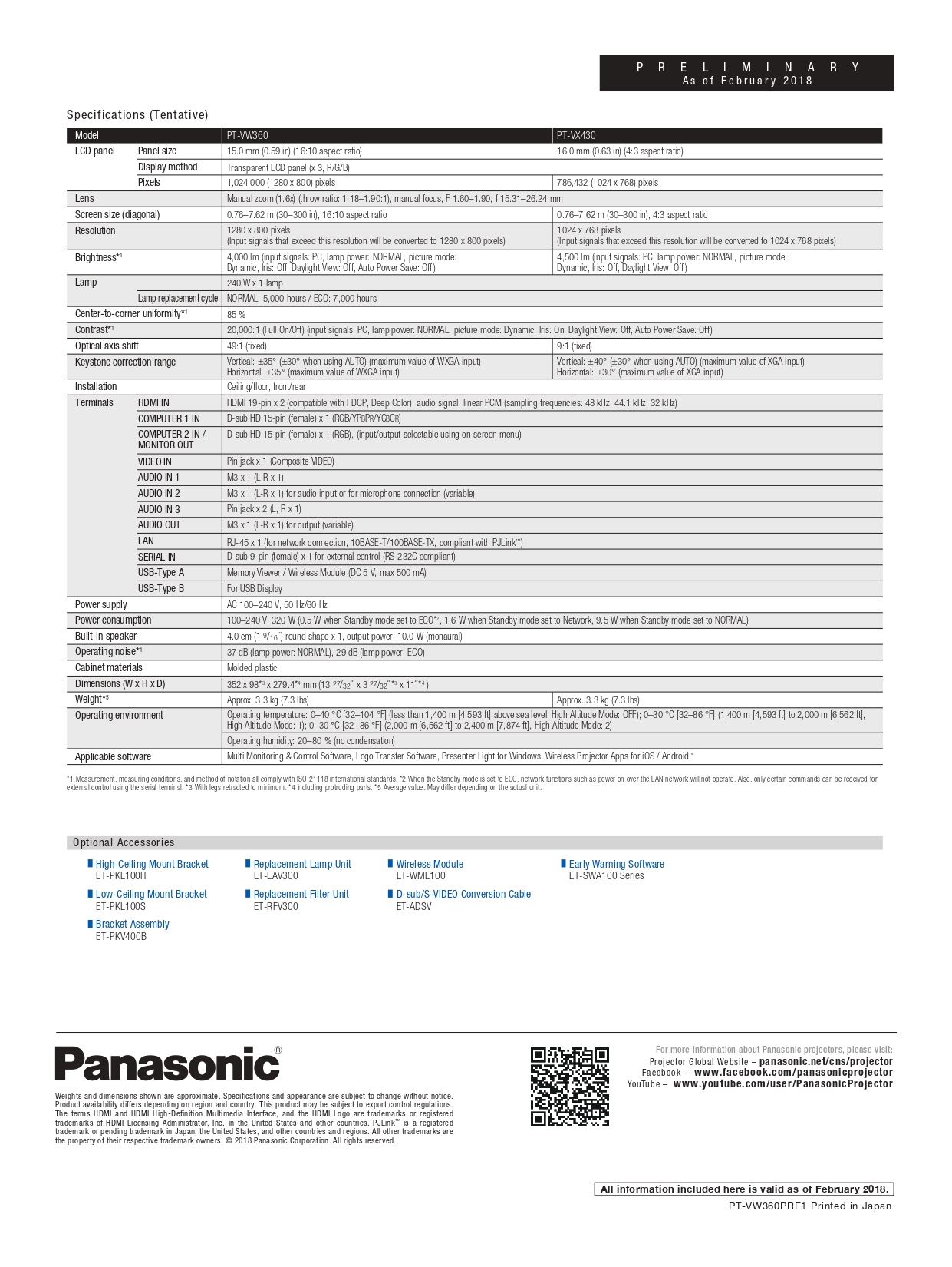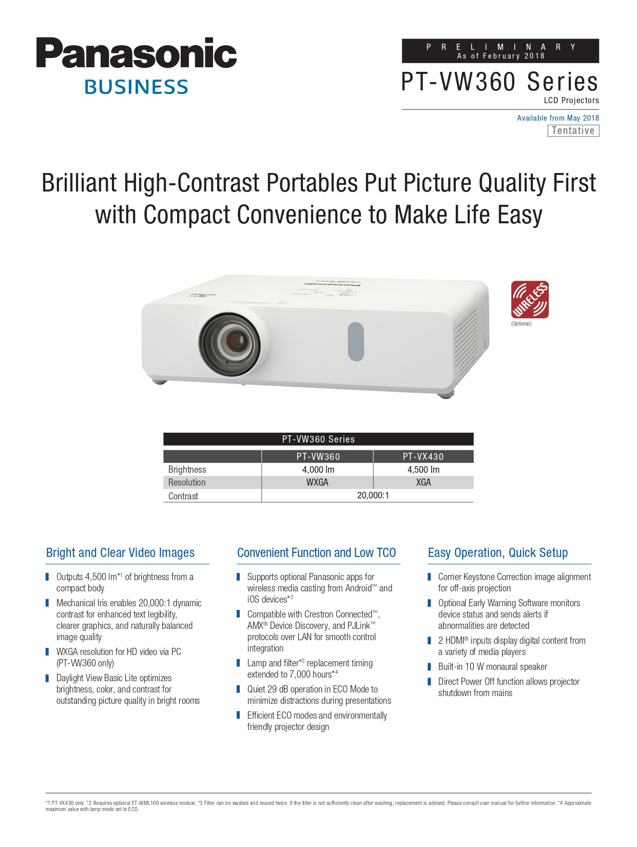 Panasonic PT-VX430 XGA LCD Projector Lan + 2HDMI (4,500 lumens)