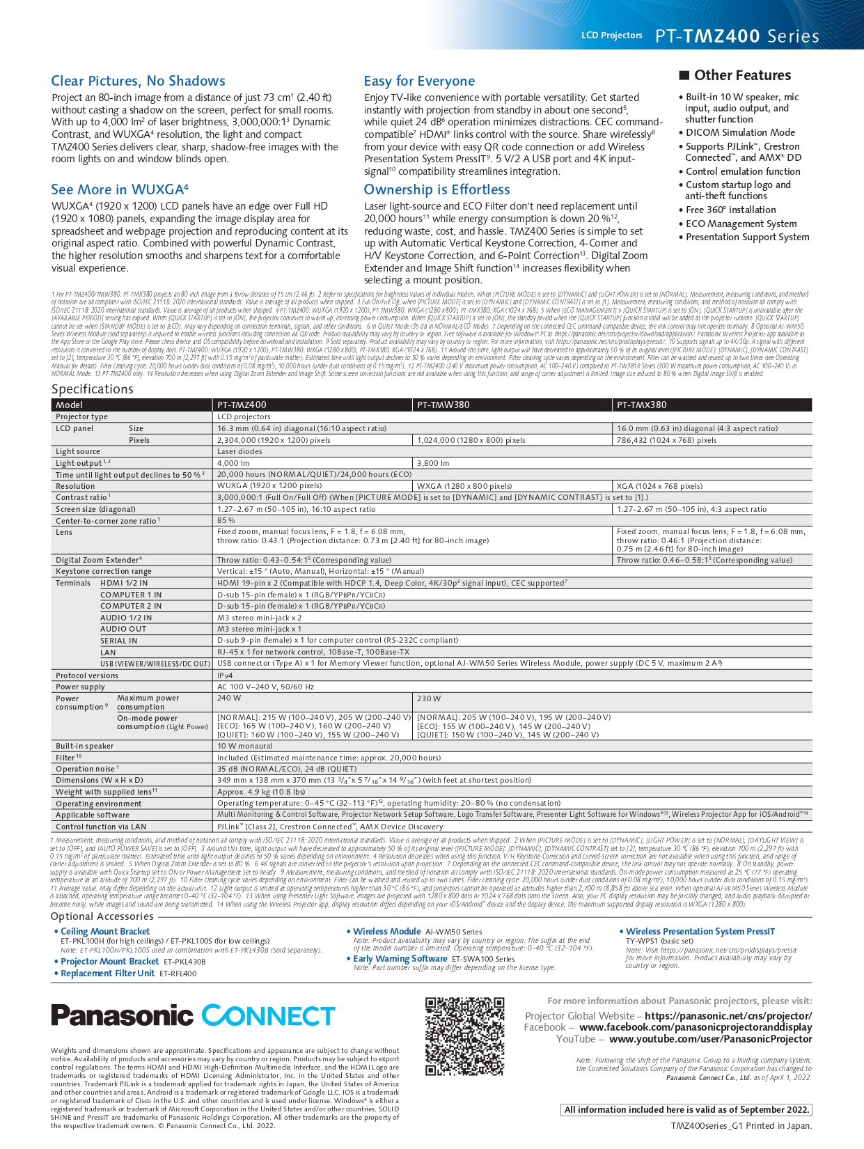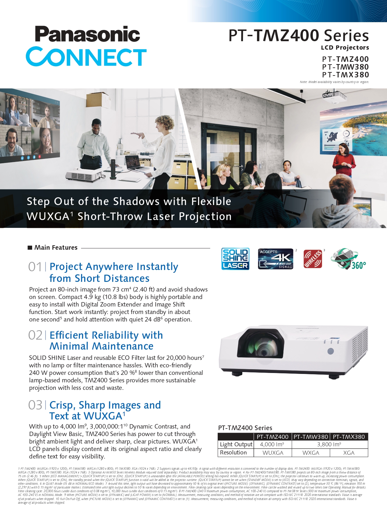Panasonic PT-TMZ400 WUXGA Short-Throw Laser Projector (4,000 lumens)