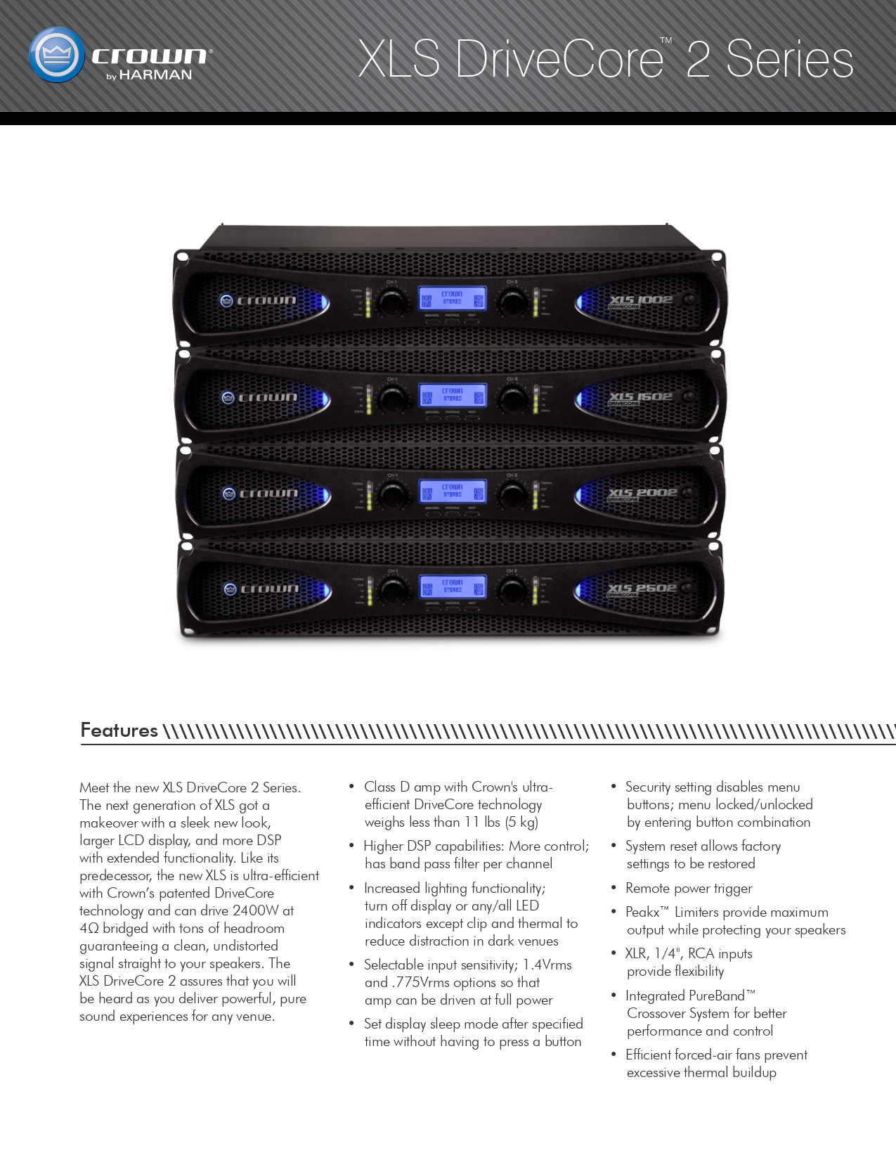 CROWN XLS 1002 Two-channel, 350W @ 4Ω Power Amplifier